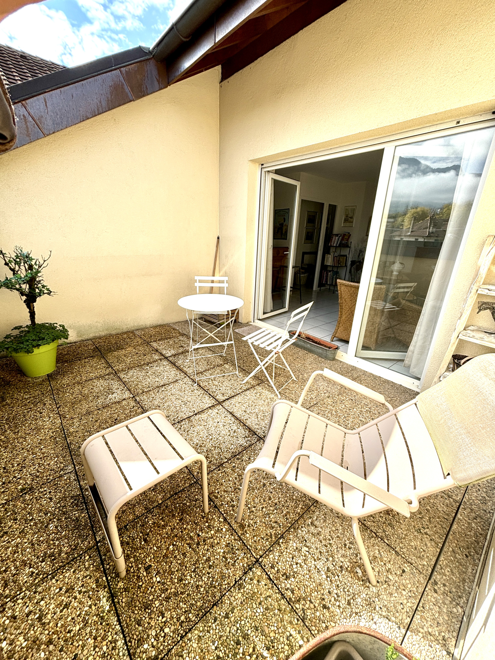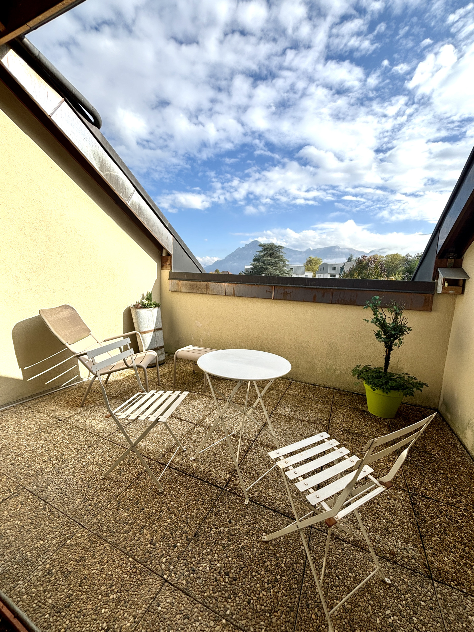 La TERRASSE TROPEZIENNE s'ouvre sur les montagnes environnantes. Pas de vis-à-vis et vue imprenable.