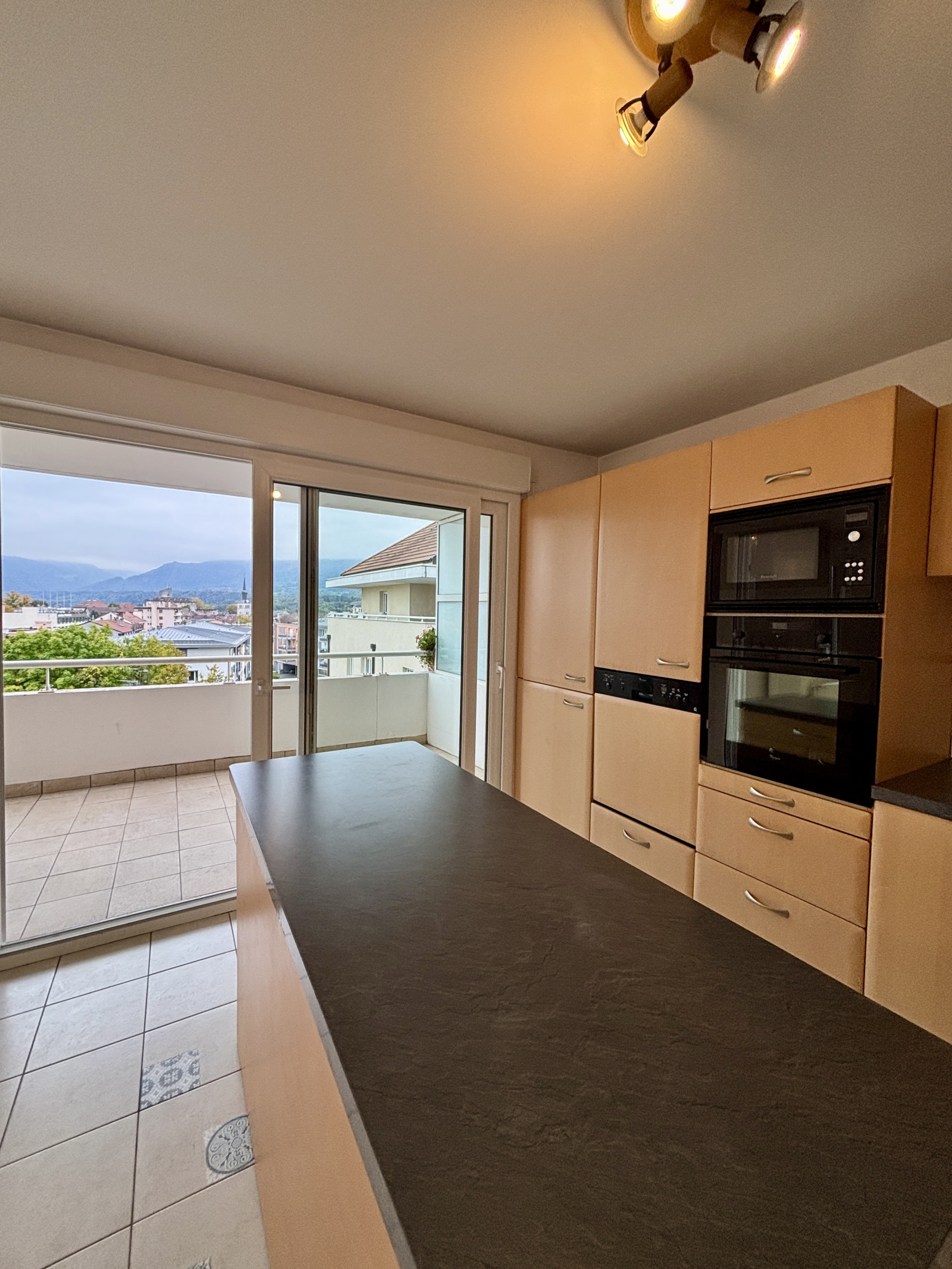 Situé dans une résidence calme et parfaitement entretenue, à seulement 5 minutes à pied du centre-ville et de la gare, cet appartement spacieux de 128,58 m² habitables offre un cadre de vie alliant confort, luminosité et panorama exceptionnel sur le Mont-Blanc.