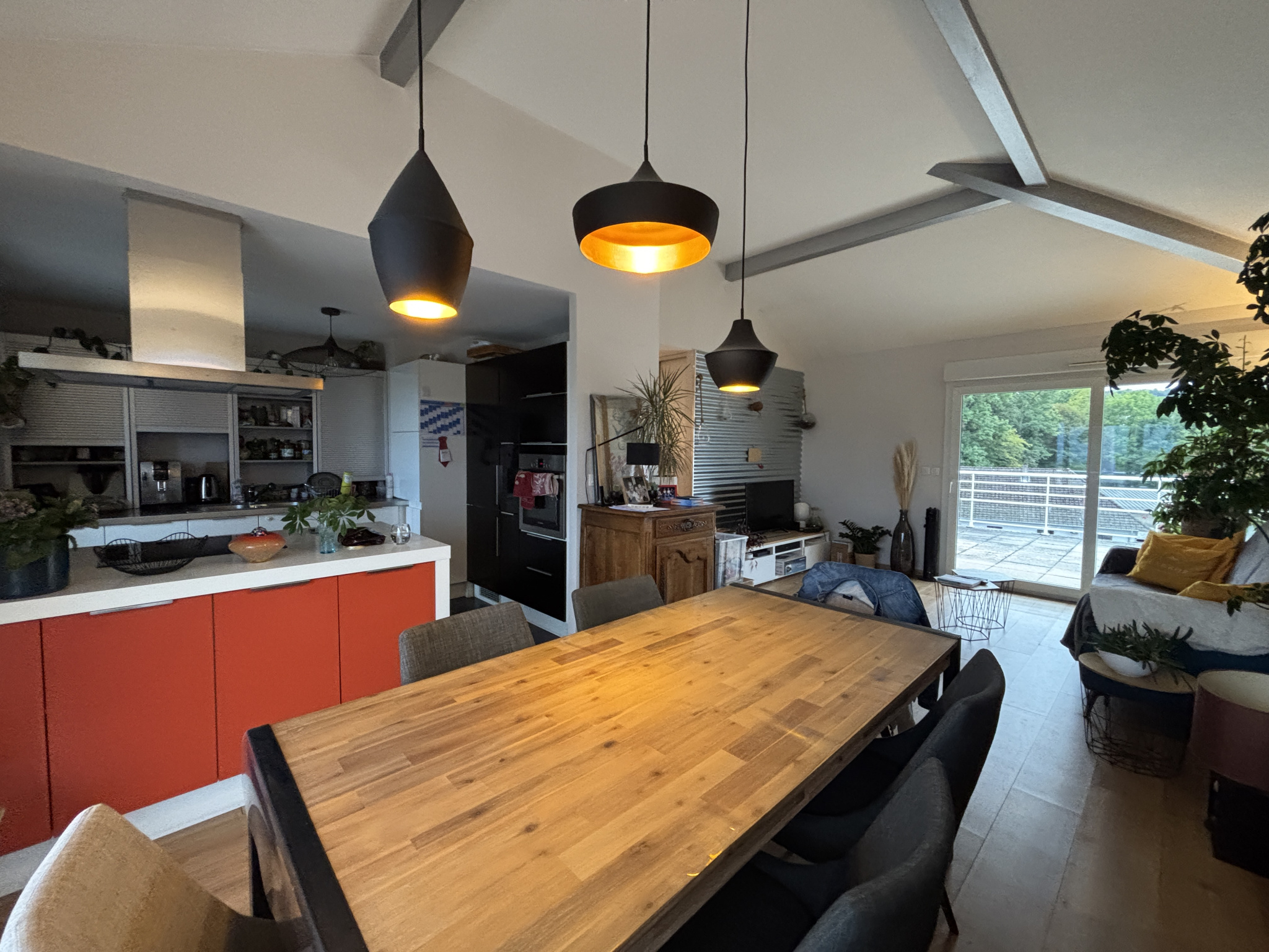 T4 en attique de 90 m², situé au dernier étage d’une résidence sécurisée. Dès l’entrée, un hall avec placards intégrés mène vers une pièce de vie traversante de près de 40 m², baignée de lumière grâce à de larges baies vitrées. La cuisine équipée s’ouvre sur le séjour, créant un espace convivial et fonctionnel. Cet espace s’étend naturellement vers deux terrasses de 30 m² chacune, véritables prolongements de la vie intérieure. Vue imprenable sur le centre historique de La Roche-sur-Foron et les montagnes.