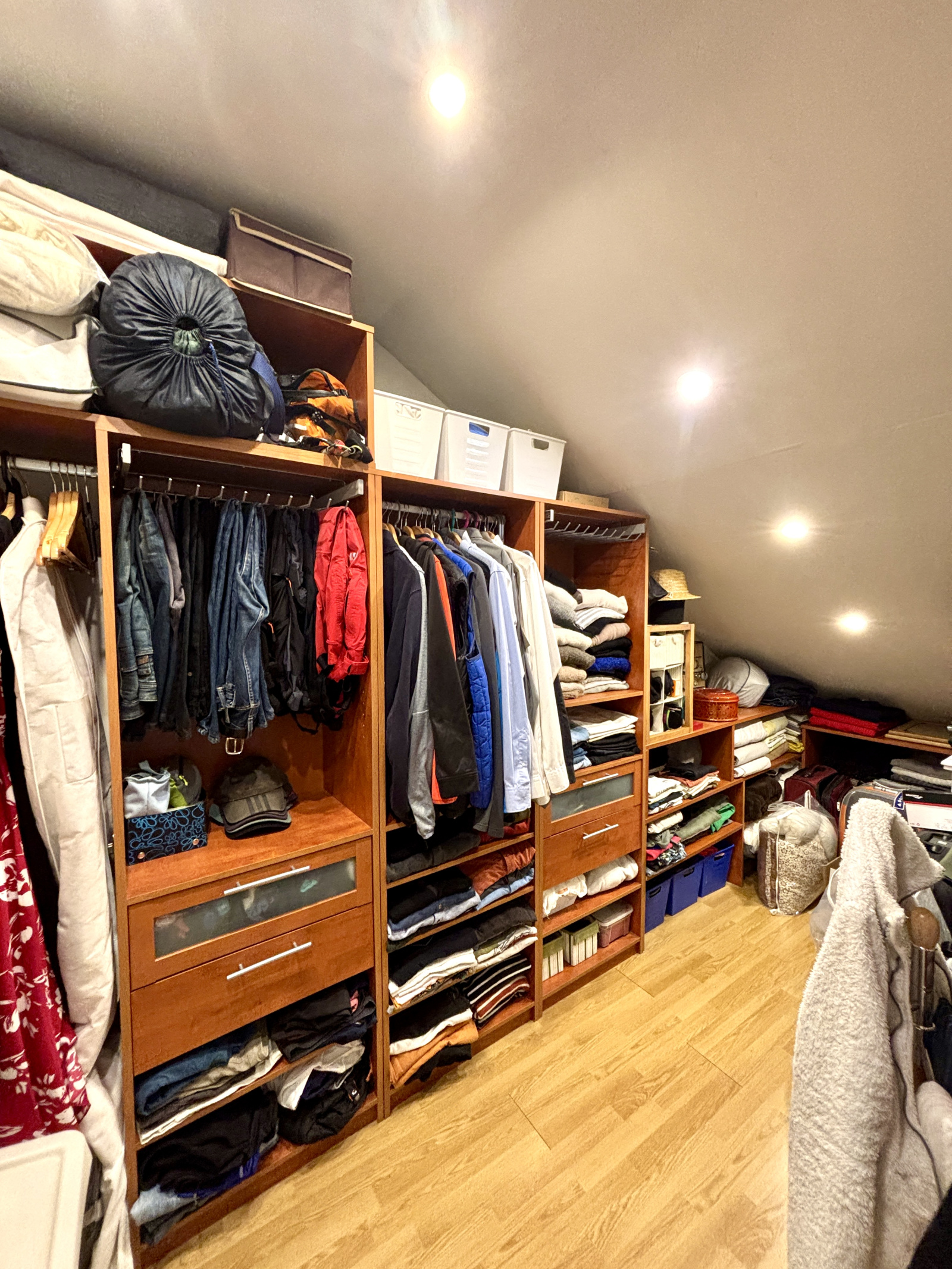 La partie nuit se compose de cinq chambres , dont une chambre parentale avec sa pièce dressing, apportant intimité et praticité. La salle-de-bains, rénovée plus récemment propose une douche à l'italienne et une baignoire. Les nombreux espaces de rangement, intelligemment répartis dans le logement, facilitent une organisation fluide et un quotidien serein.