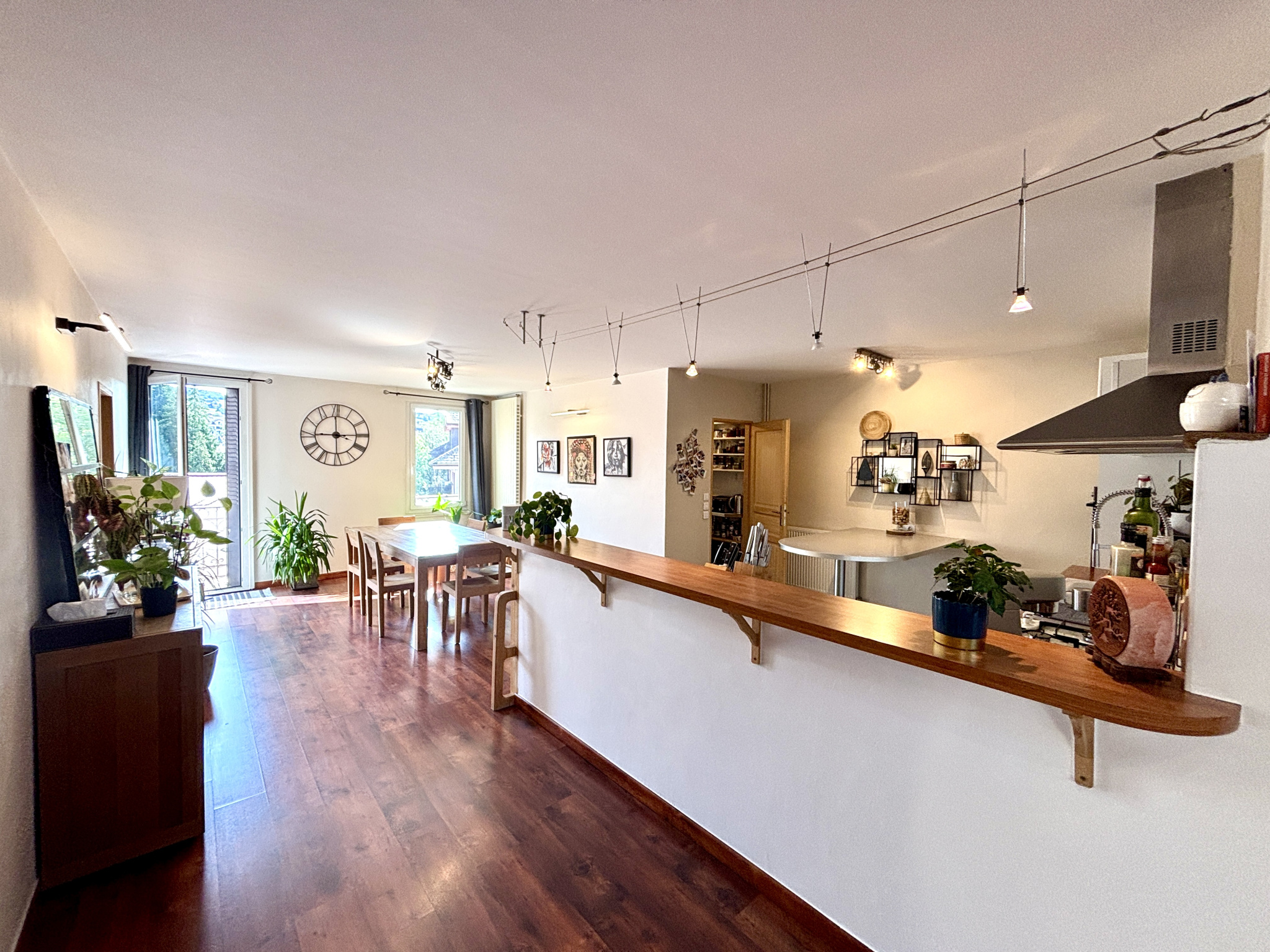 Situé au cœur de La Roche-sur-Foron, dans un environnement recherché pour sa praticité et sa qualité de vie, ce bien rare de 154 m² habitables (loi Carrez) et 213 m² utiles, offre des espaces généreux et parfaitement adaptés à la vie de famille. La cuisine, conviviale et fonctionnelle, complétée par un cellier attenant, s'ouvre sur le séjour, offrant une pièce de vie de 60m2. Le salon cathédrale, donne une impression de volume remarquable et une luminosité exceptionnelle.