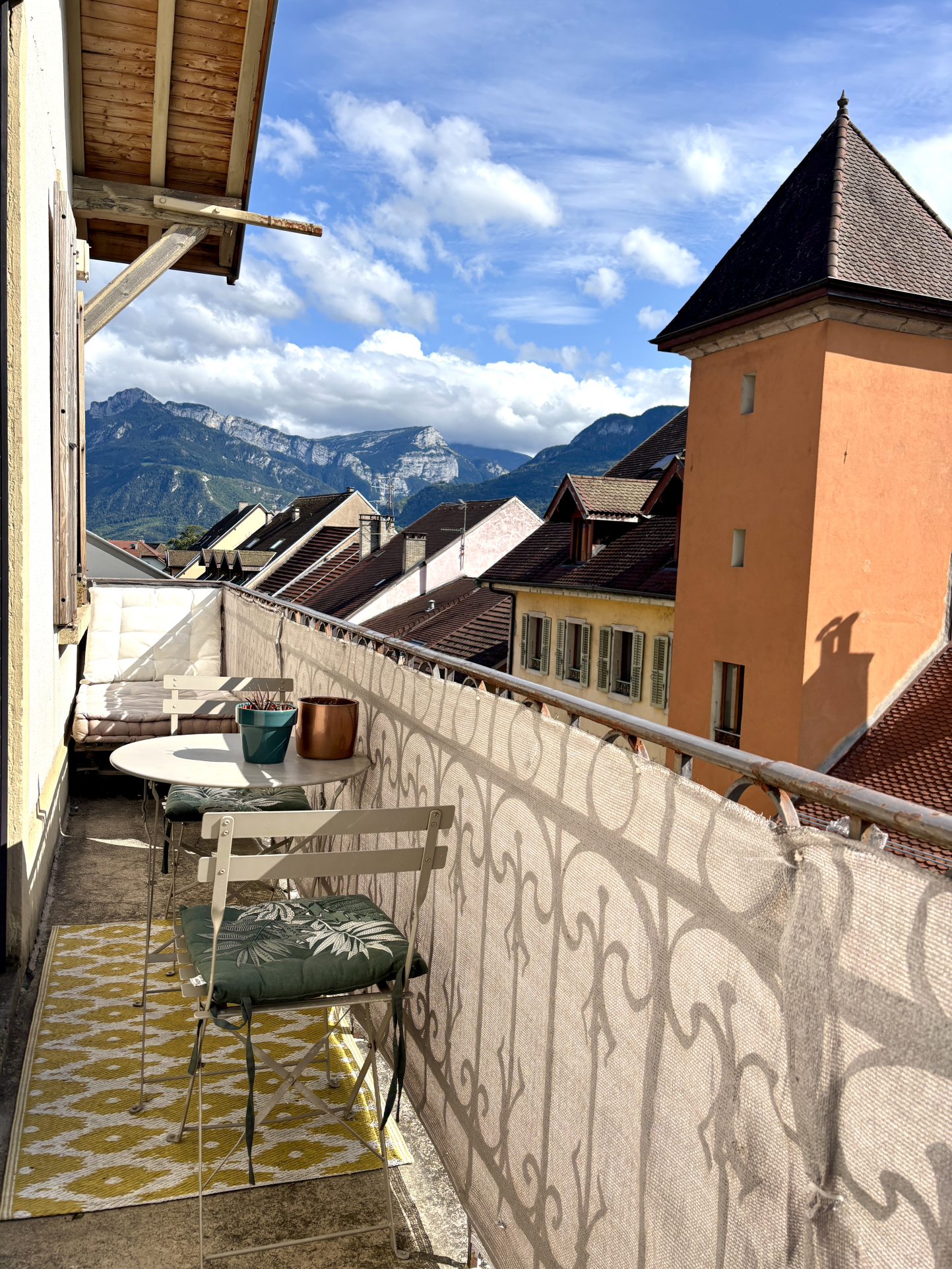 À l’extérieur, un long balcon exposé sud permet de profiter d’une belle luminosité tout au long de l’après-midi et en soirée, dans un environnement calme malgré la situation centrale.