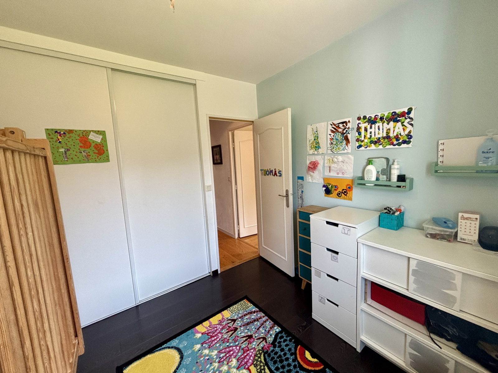La partie nuit dispose de trois chambres, d’un dressing indépendant, ainsi que d’une salle de bains complète, équipée à la fois d’une baignoire et d’une douche, et d’un WC séparé.