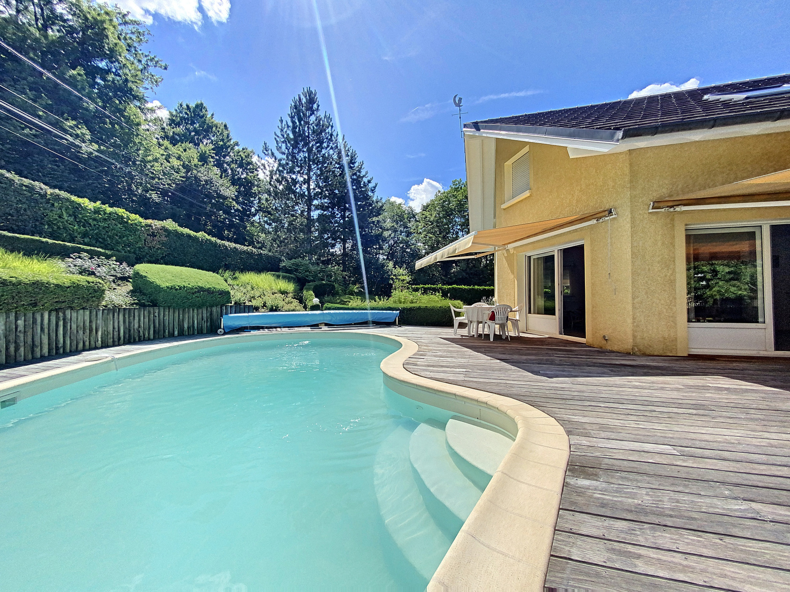 Edifiée sur un terrain plat et clos de 1164 m2, dans un quartier résidentiel calme, vous savourerez la tranquillité et l'intimité qui sont les maîtres mots. A l'abri des regards, cette propriété sans vis-à-vis vous offre un cadre de vie exceptionnel, alliant confort et sérénité.