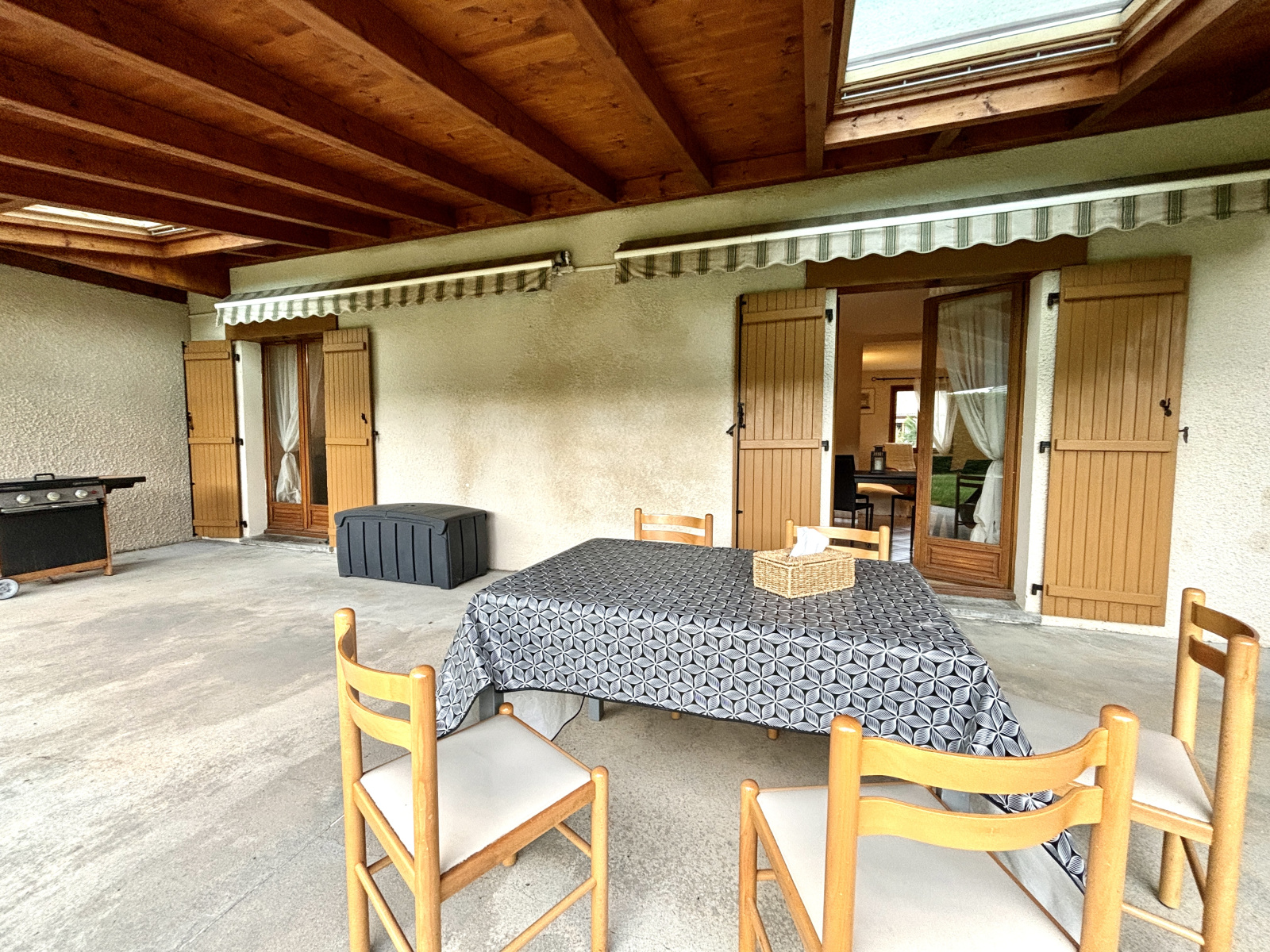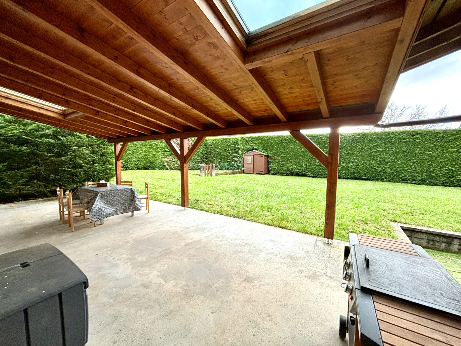 LA PIECE DE VIE DE 55m2 avec la cuisine ouverte sur le séjour, donne de PLAIN-PIED SUR LA TERRASSE abritée de 50m2 et le jardin. Le rez offre également une chambre, une salle-de-bains, un WC séparé ainsi qu'une spacieuse pièce en arrière cuisine faisant office de buanderie/chaufferie/cellier.