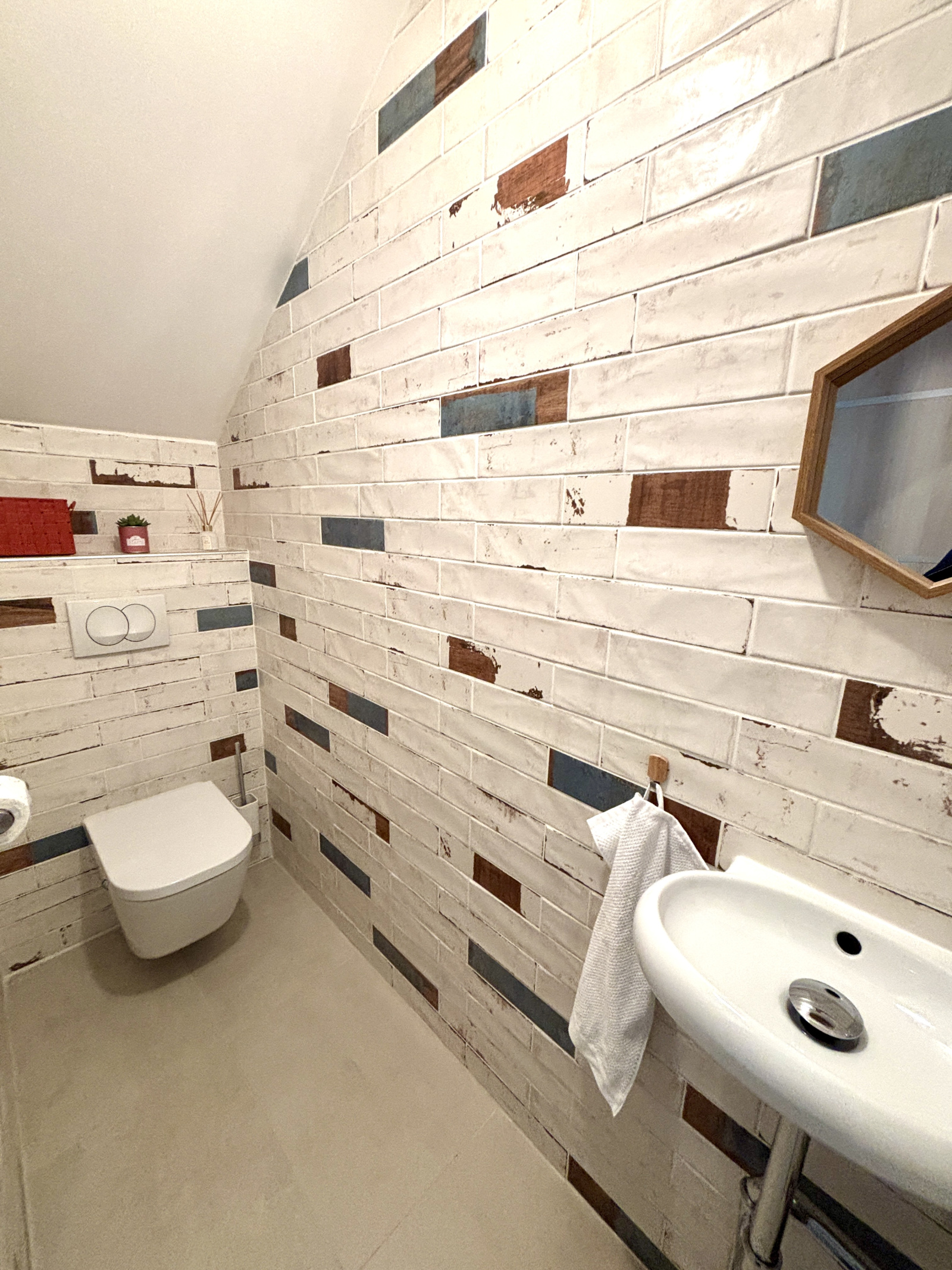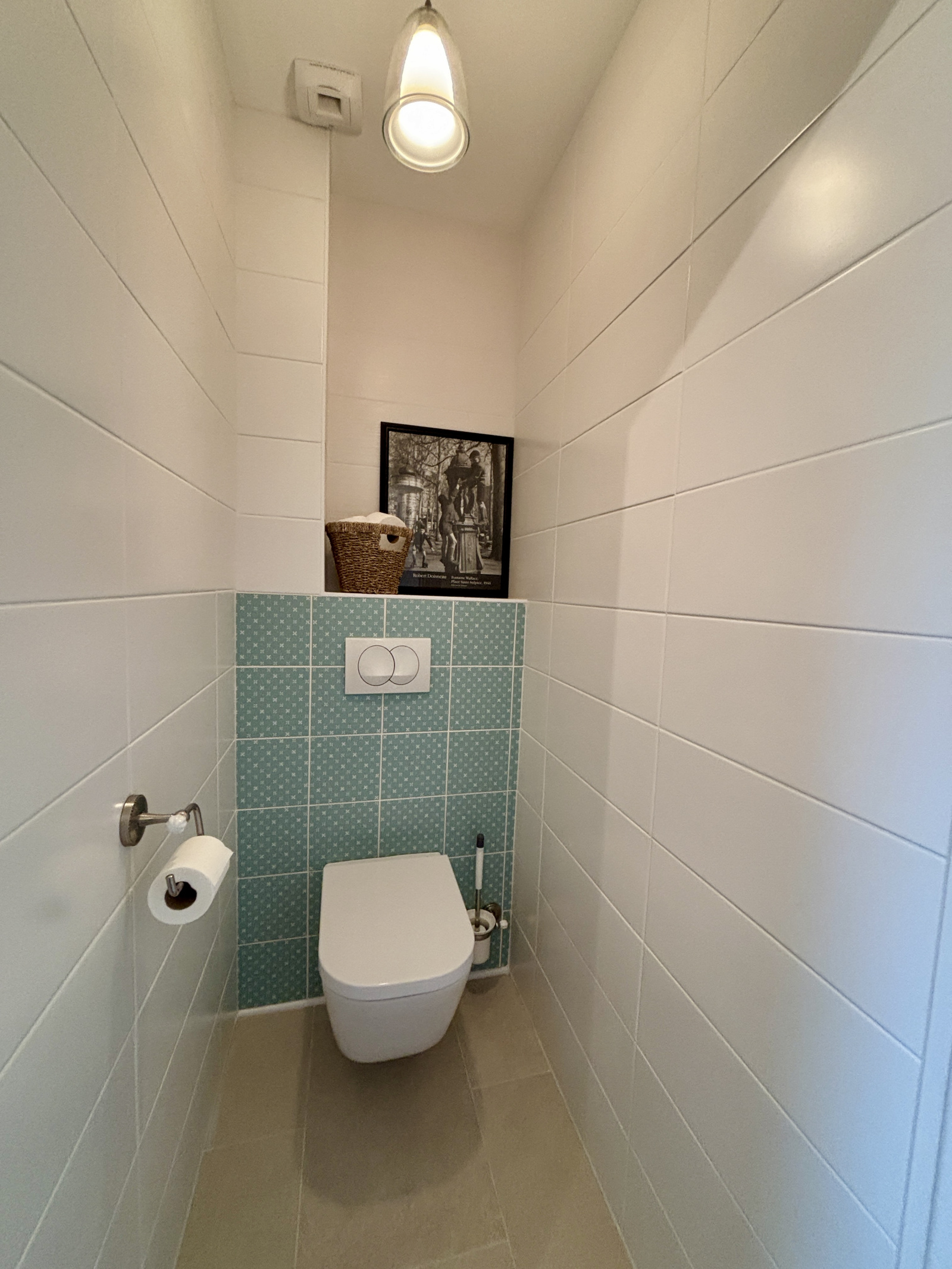 Le cellier / buanderie, attenant à la cuisine, apporte un vrai confort. Vous trouverez également un WC avec lave-mains pour les invités.