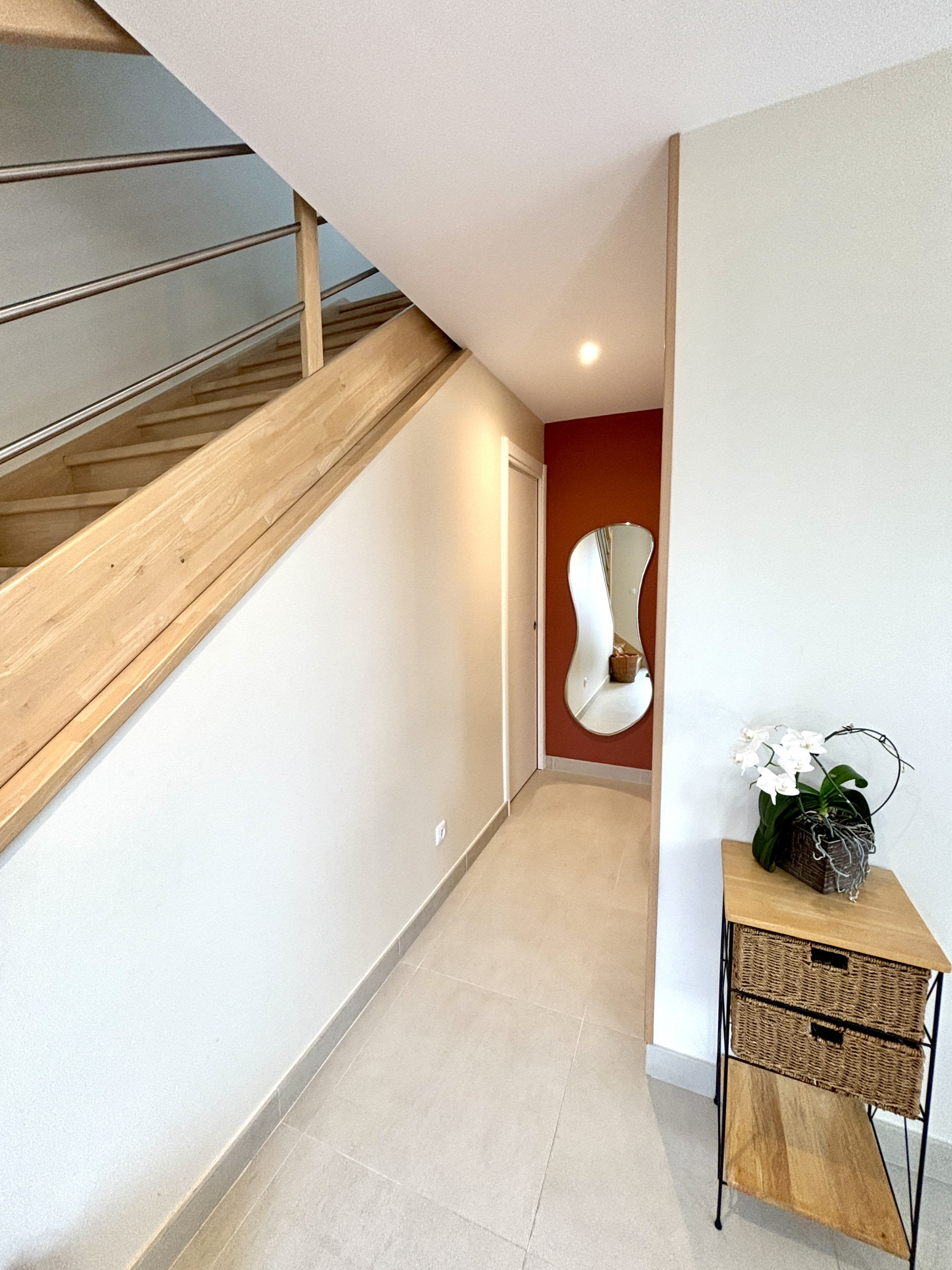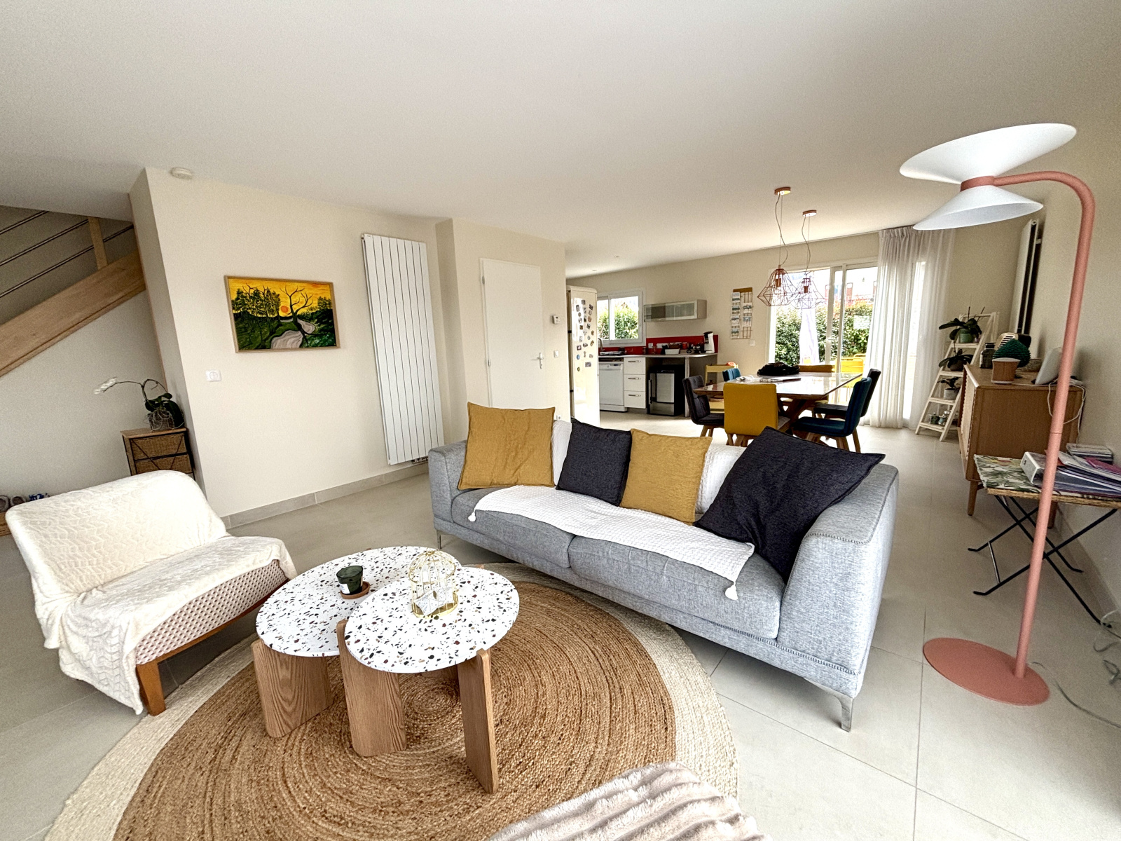 Ambiance cosy pour cette maison de 110 m2 habitable, édifiée en 2018 sur un terrain clos et plat de 601 m2.