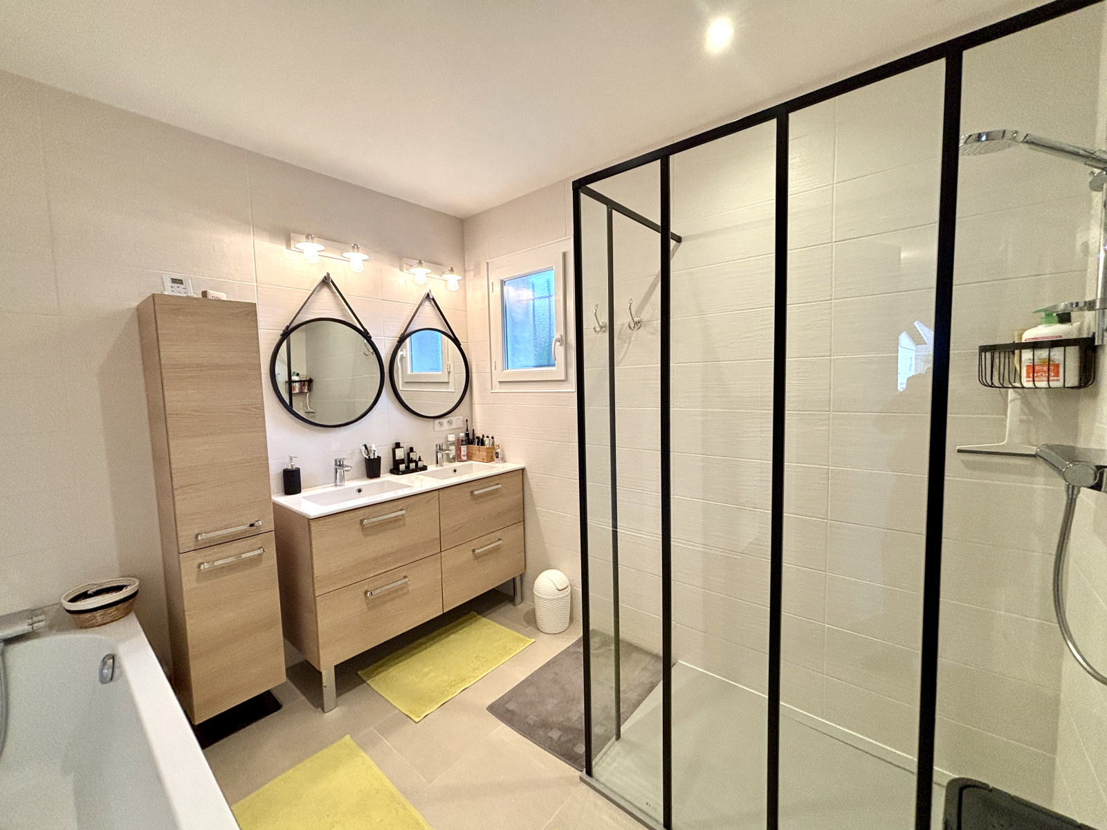 Au rez, vous serez séduit par la pièce de vie lumineuse de 50 m2, avec sa cuisine équipée ouverte sur le séjour, qui s'ouvre sur la terrasse et le jardin.